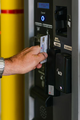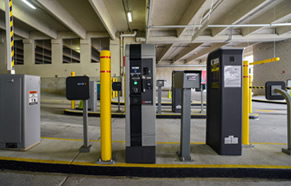 A variety of pay-on-foot stations serve the various customer types, from students and hotel guests using ID cards and room keys to retail shoppers paying by credit card. |